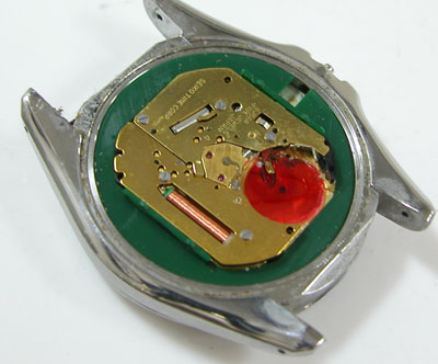 これがムーブメントですがパッキンが硬化して役目を果たしていない。