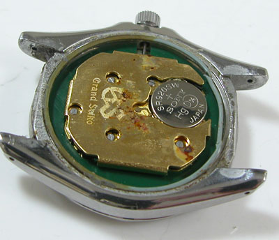 職人さんにみせたところ「水入りパターンは数ヶ月で回路不良が起こる確率が高い」との事と、ムーブのサビ具合からは「メーカー修理」がベストと言うことで職人さんの店からメーカーへ。こうなると費用も大きくなってきます。