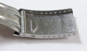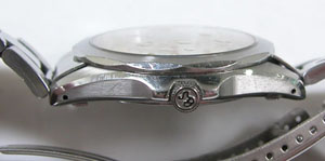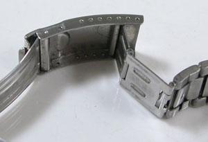 ステンレス板巻きバンドに三つ折れダブルロックバックル。グランドで板巻きはあり得ないので既製に交換されておりますが見事なマッチング。見ただけでは既製に見えないコーディネートには驚き。
