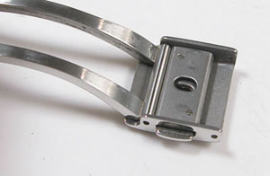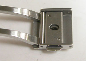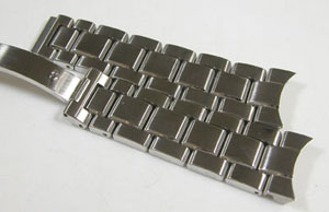 ステンレス無垢バンドに三つ折れプッシュバックル。