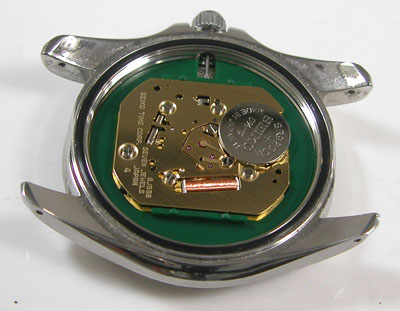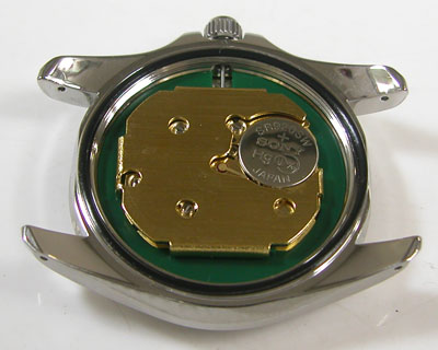 綺麗になったケースにムーブメントを戻して電池格納部をチェックします。