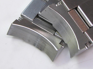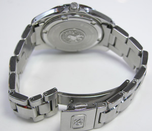 重厚なステンレス無垢バンドに三つ折れプッシュバックル。