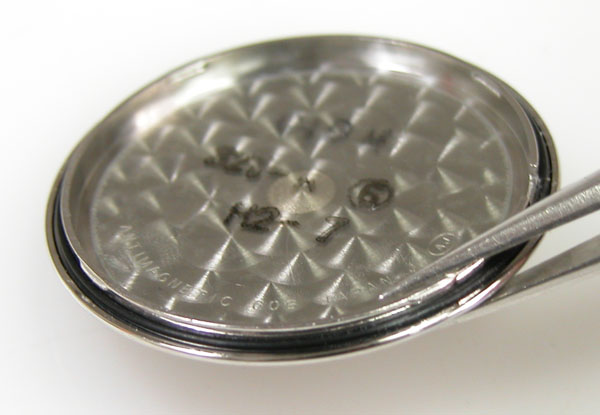 綺麗になったケースにムーブメントを戻して電池格納部をチェックします。