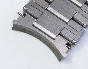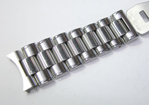 ステンレス無垢バンドに三つ折れバックル。