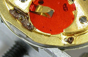 ムーブメントの端のネジが錆び付いておりますが、これは触らない方が無難。