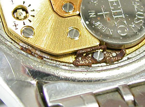 綺麗になったケースにムーブメントを戻して電池格納部をチェックします。