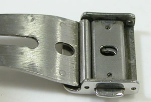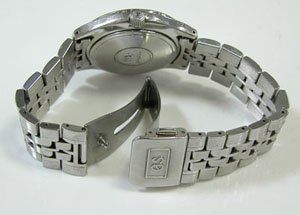 ステンレス無垢バンドに三つ折れプッシュバックル。