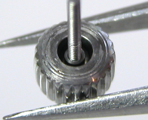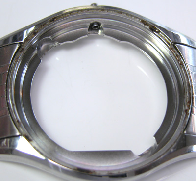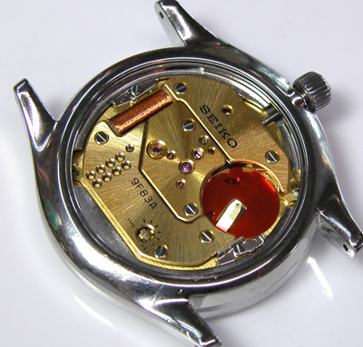 綺麗になったケースにムーブメントをもどして電池格納部をチェックします。