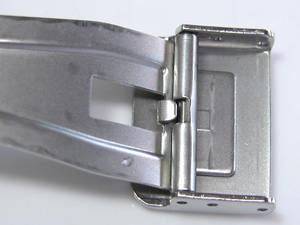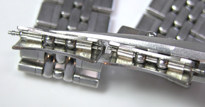 重厚なステンレス無垢バンドに無垢・・・ん?の割には板バネバックル。こういったモデルもあったのですね・・。裏蓋は”はめ込みタイプ”で。