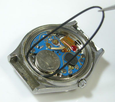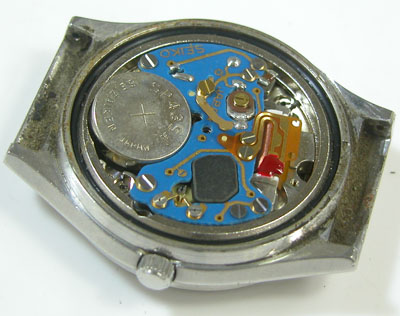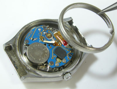 綺麗になったケースにムーブメントを戻して電池格納部をチェックします。