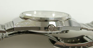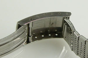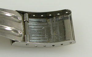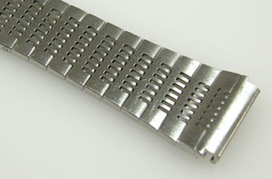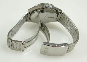 ステンレス無垢バンドに三つ折れバックル。
