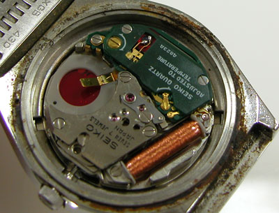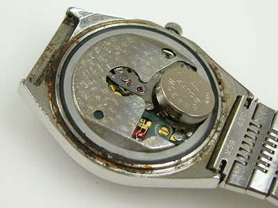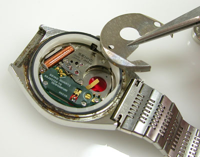 綺麗になったケースにムーブメントを戻して電池格納部をチェックします。