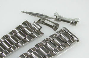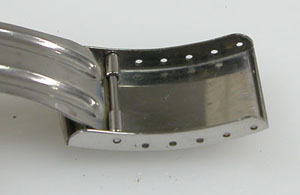 ステンレス板巻きバンドに三つ折れバックル。