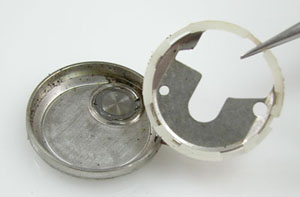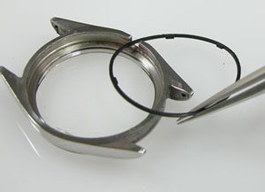 パッキンは普通文字盤側に残りますがケース側に。