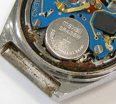 綺麗になったケースにムーブメントを戻して電池格納部をチェックします。