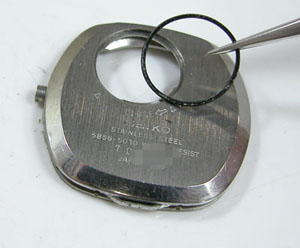 パッキンは交換してシリコン塗布をして裏蓋に戻します。’