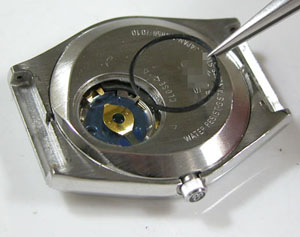 バネの部分も洗浄して綺麗になりました。次ぎに電池蓋パッキンをチェックします。