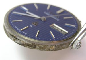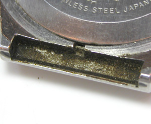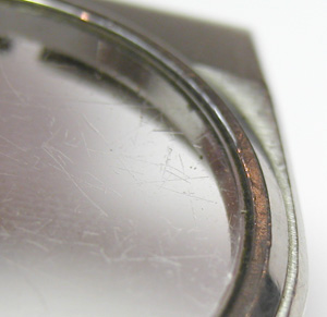 ガラスとケースの隙間の汚れ。これは洗浄しないと落ちませんね。