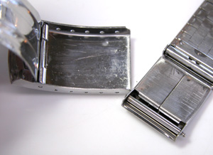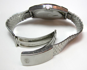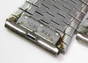 King Quartz5856-8070 キングクォーツ電池交換メンテナンスです。かなり薄型のメタルバンドですがステンレス無垢なのです。この頃の、このタイプのメタルバンドは独特の作りですね・・・今、同じ作りでこのバンドを作ればいくらになるのやら?