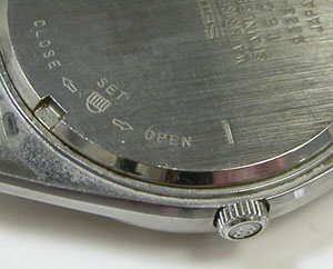 スクリューバックといっても竜頭の絵の位置を竜頭まで回すのみ。裏蓋の裏側もチェックして。