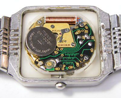 綺麗になったケースにムーブメントを戻して電池格納部をチェックします。
