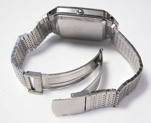 ステンレス無垢バンドに三つ折れバックルですが、この頃のステンレス無垢は緻密さが違います。洗浄してもしても汚れが出てくるところから作りに感心する次第。
