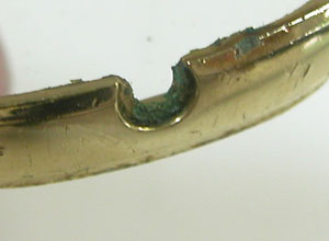 このケース専用のオープナー、爪が入る穴の幅に合わせて開閉させて突きます。