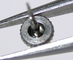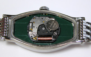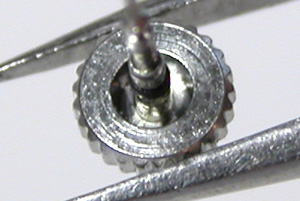 EPSONムーブメントですからセイコー。竜頭の裏側チェック。