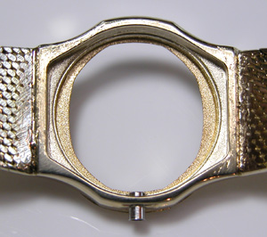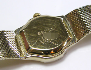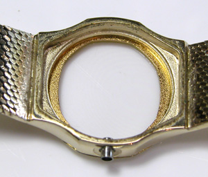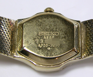裏蓋には”JAPN”の文字が見えます。こうやってみるとこの頃のメッキの厚さがわかりますね。この頃のものなら思い切ったバフ掛けが出来そうなくらいです。