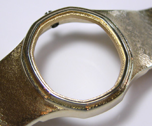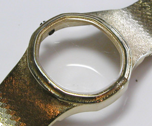 裏蓋も洗浄します。この左のメッキが剥がれて錆びた所をみれば厚みがわかります。竜頭パイプも綺麗になりました。