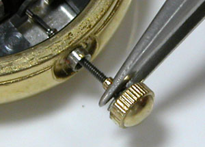 文字盤&ムーブメントを取り出します。竜頭パイプのチェック。