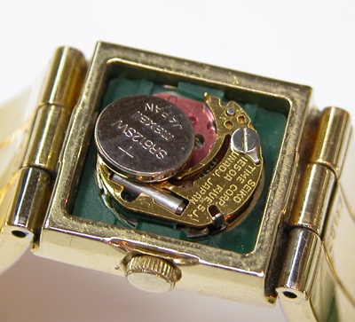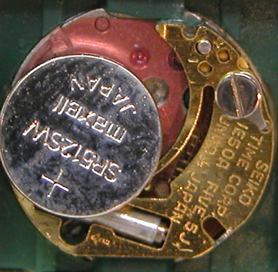 ムーブメント拡大。電池がSR512SWと言う事は電池の直径5mmですから如何に小さなムーブメントであるか分かります。