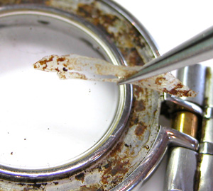 さて、いくら洗浄してもラグ部の片方とバンドの隙間からサビが出てくる?