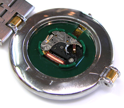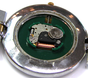 綺麗になったケースにムーブメントをもどして電池格納部をチェックします。