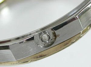 スクリューバックといってもグルグルは回さないタイプですが、これ竜頭位置に合わせて開閉しますが竜頭が無い側に合わせてありますね。