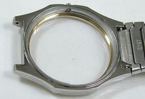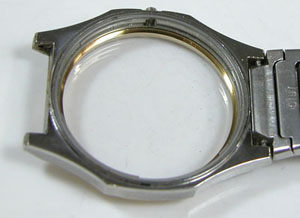 ケースの内側もチェックします。ベルトが片方外れませんからそのまま作業します。