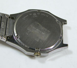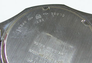 裏蓋はスクリューバックで右が裏蓋記載。