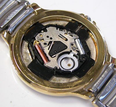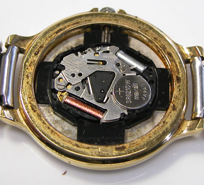 綺麗になったケースにムーブメントを戻して電池格納部をチェックします。