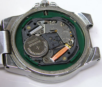 綺麗になったケースにムーブメントを戻して電池格納部をチェックします。