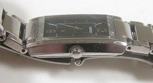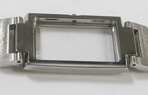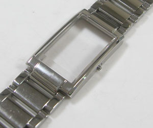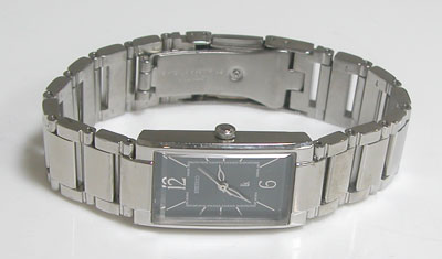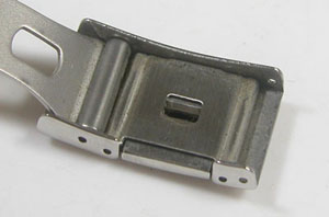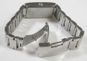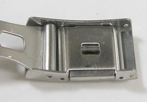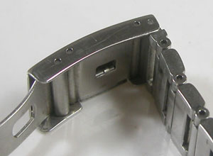 ステンレス無垢バンドに三つ折れプッシュバックル。