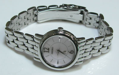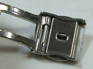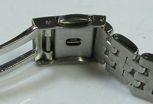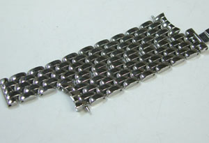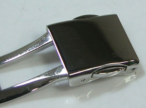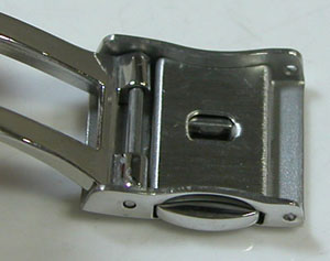 ステンレス板巻きバンドに三つ折れプッシュバックル。