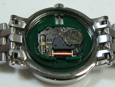 綺麗になったケースにムーブメントを戻して電池格納部をチェックします。