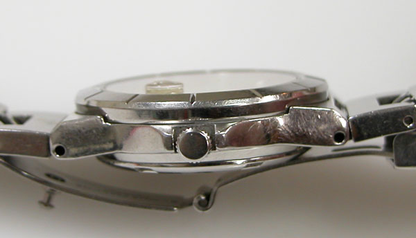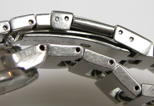 ステンレス無垢バンドに三つ折れプッシュバックル。