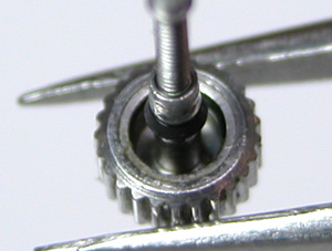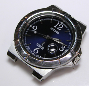 竜頭の裏側チェック。これが取り出した文字盤&ムーブメント。