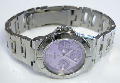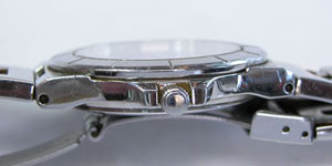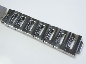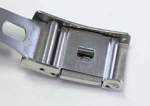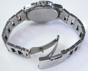 ステンレス無垢バンドに三つ折れプッシュバックル。