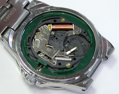 綺麗になったケースにムーブメントを戻して電池格納部をチェックします。