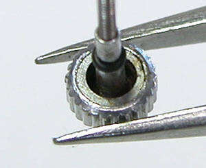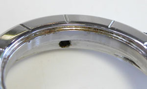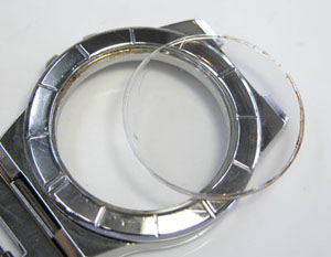 指で押すと簡単に外れました。この状態ではガラス面に水滴が付いたのみで湿気が文字盤に浸透し文字盤にシミが出来る原因となります。