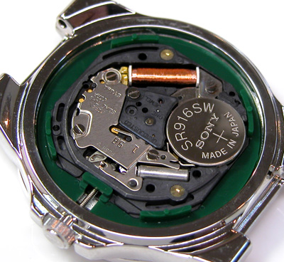 綺麗になったケースにムーブメントを戻して電池格納部をチェックします。