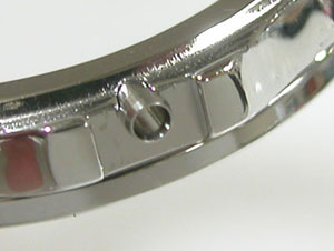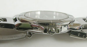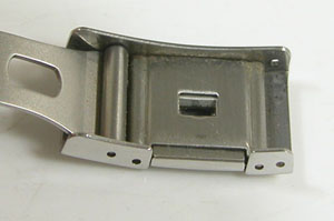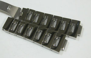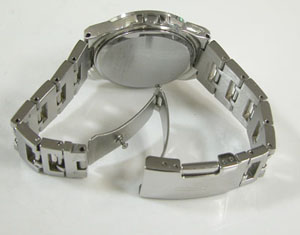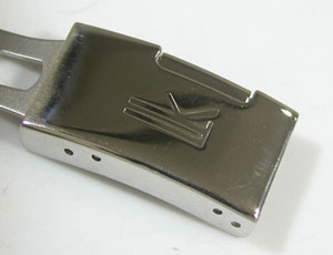 ステンレス無垢バンドに三つ折れプッシュバックル。