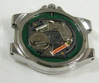 綺麗になったケースにムーブメントを戻して電池格納部をチェックします。